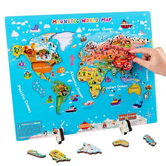 Our world maps are certainly no exception. They transform knowledge of the world map into a game that is both interactive and meaningful. Your child will be able to move certain pieces on the map, such as countries or continents, to memorize their names and locations and learn more about our magnificent planet.